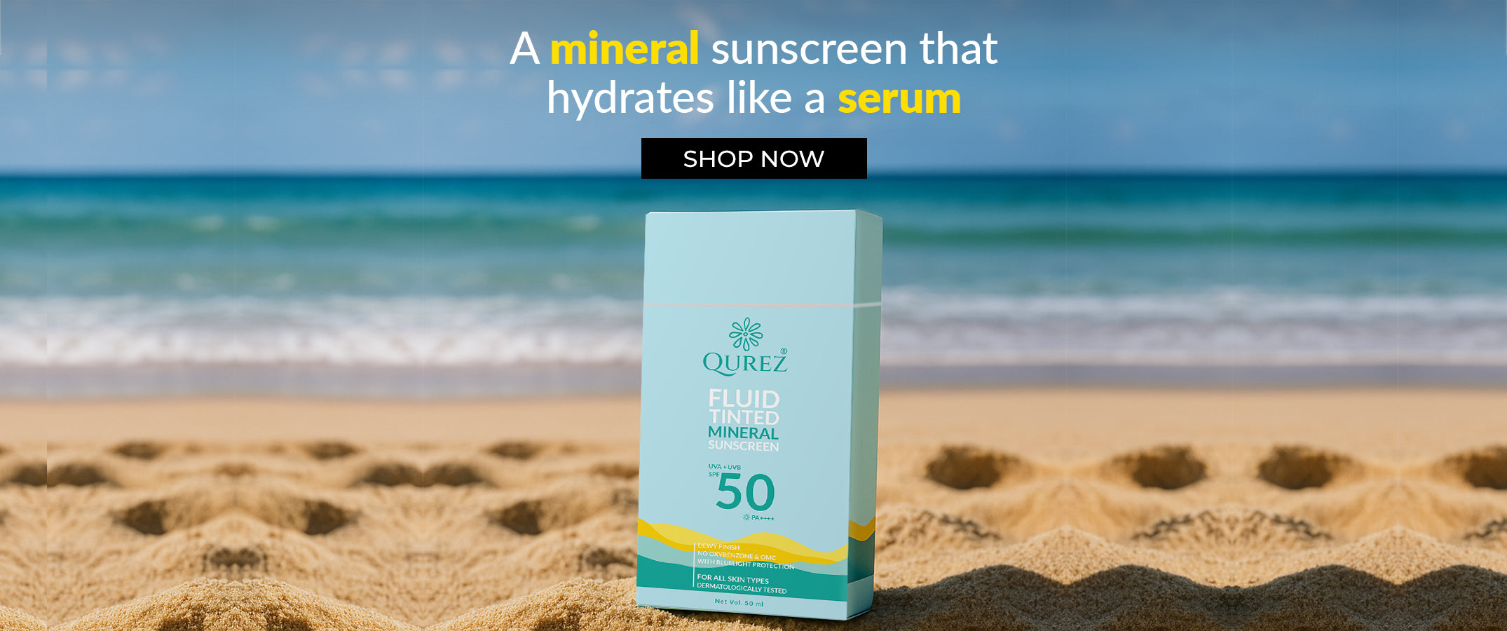 Qurez Fluid Tinted Mineral Sunscreen SPF 50 PA++++ with Cica, Ceramides and HA | Dermatologically Tested & Pregnancy Safe