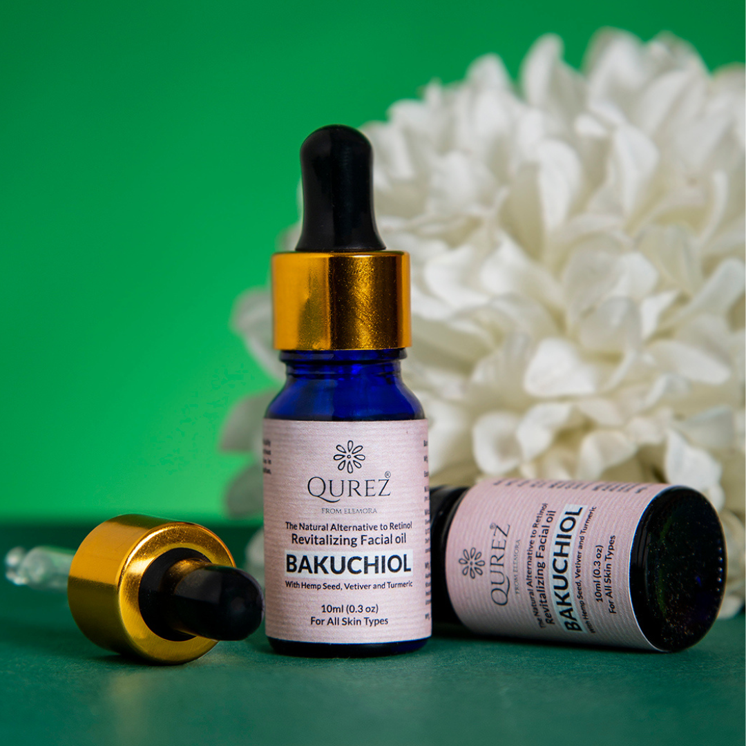 Qurez presents to you ‘Bakuchiol’ -Natural Retinol. This vegan plant is native to India and has many skincare benefits! It helps in diminishing fine lines and wrinkles, it helps in restoring skin elasticity and also termed as an acne-fighter. It's full of anti-inflammatory, anti-ageing, antioxidant and anti-bacterial properties!